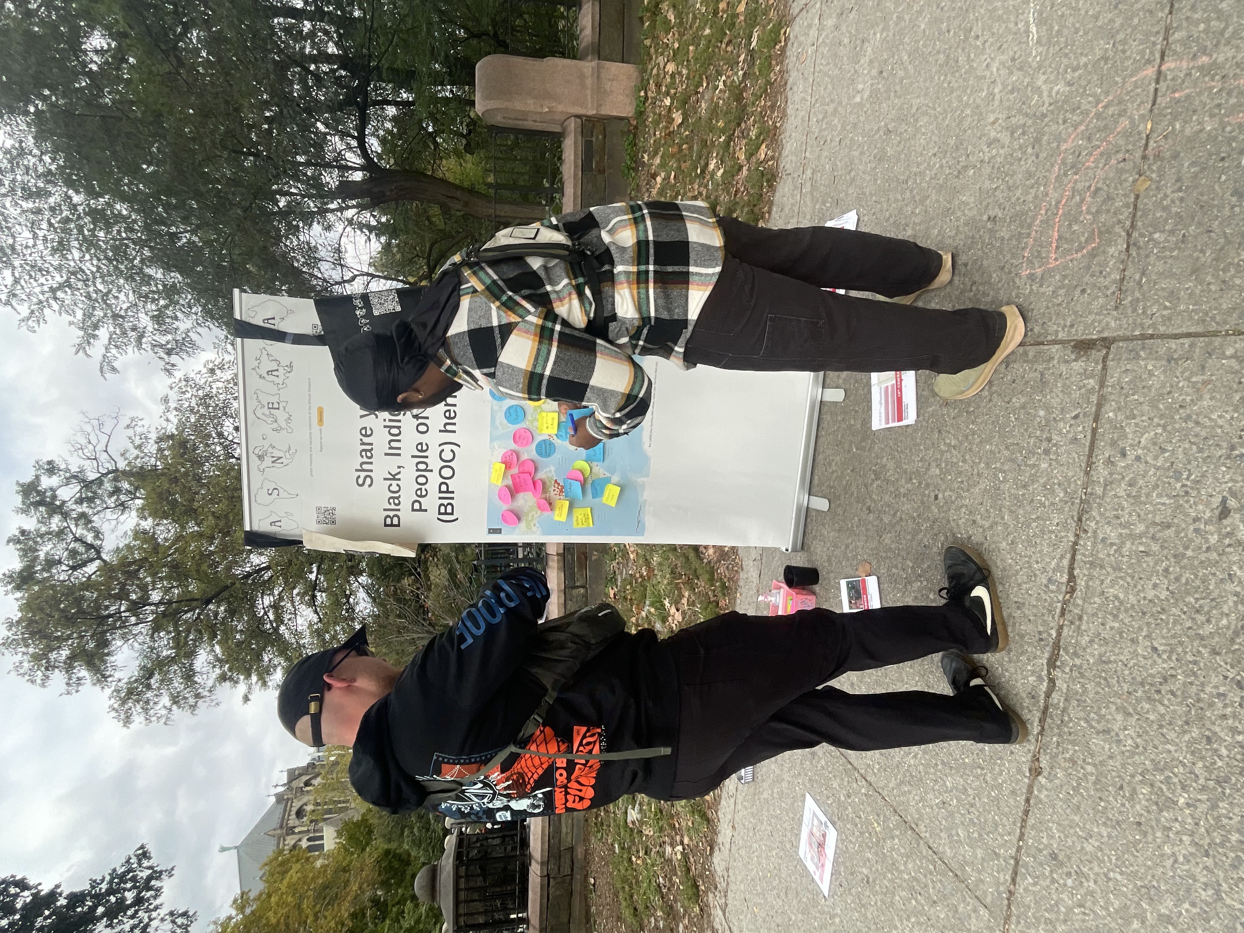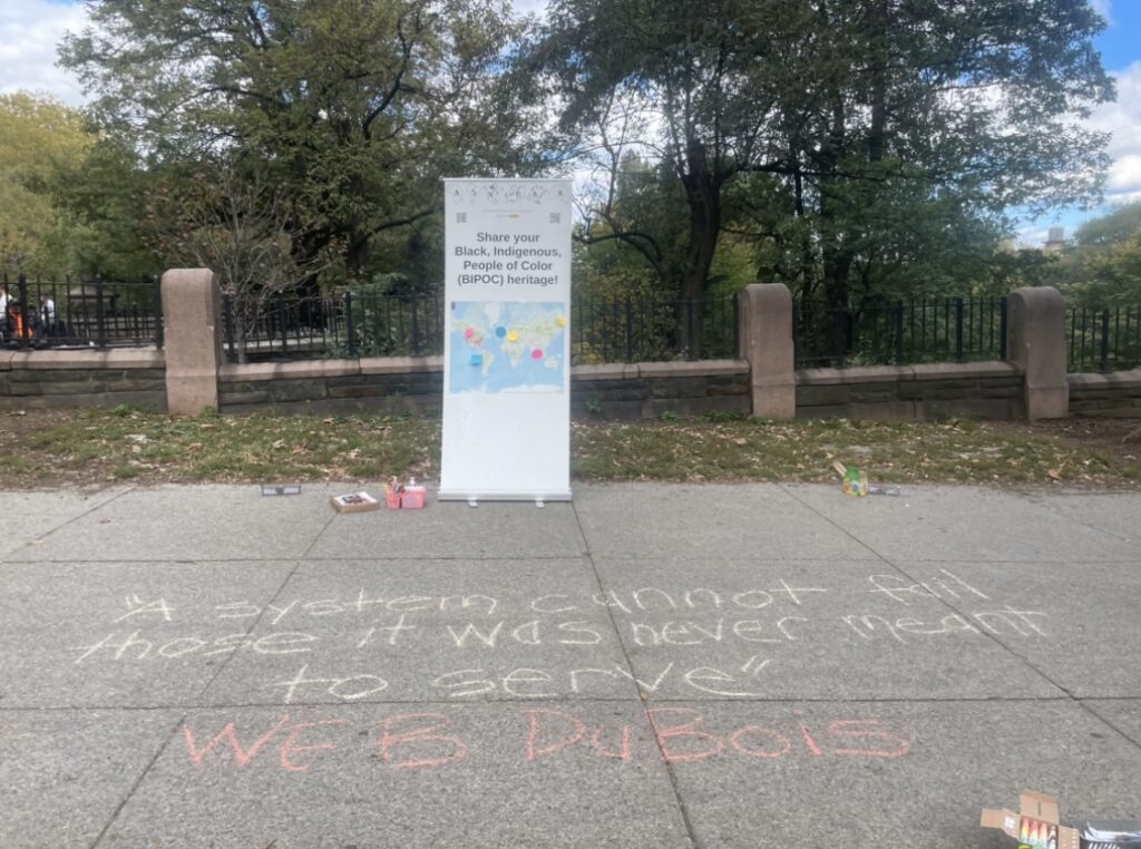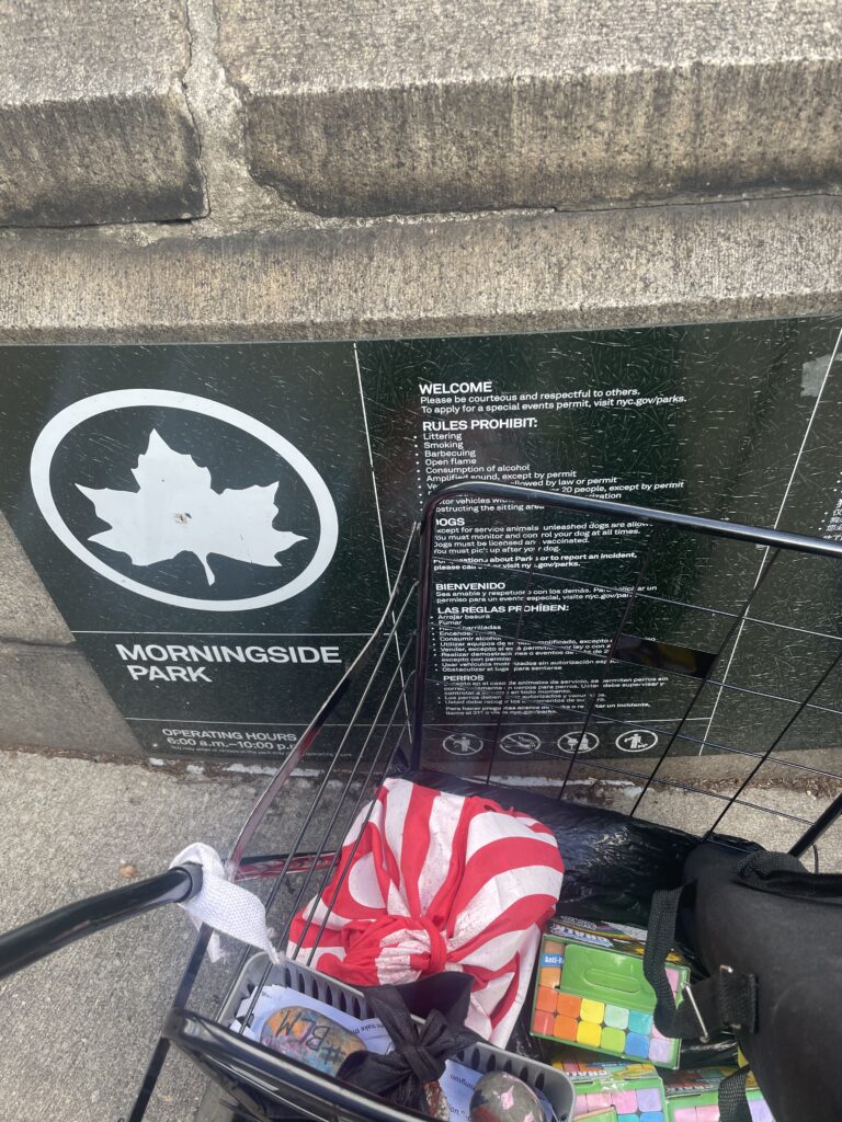 Rather than be defeated by bureaucratic forces out of my control, I kept my word as a leader to follow through with CLP x Morningside Park programming this month. I had done multiple walkthroughs onsite- and the goal was to target the surrounding community- including collegiate institutions for some cultural engagement. When I arrived on site and saw the weekly farmer’s market, it was a pleasant surprise! I decided to set-up at the West 110th Street and Morningside Drive entrance- next to the lovely Nature Conservancy staff (and much needed affirmation that I am not alone in my ambitious stance for social justice.)